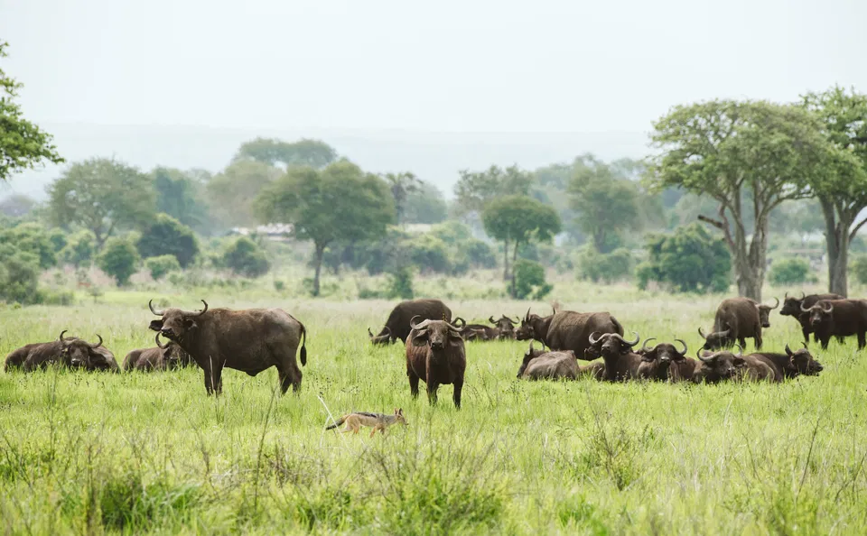 The landscape includes acacia-dotted grasslands, baobab stands, miombo woodlands, seasonal wetlands, and dense riverine forests. As the seasons shift, the park transforms from a dry, amber-colored savannah in the late months of the year to a vibrant mosaic of greenery during the rains, attracting grazers, birds, and predators in impressive numbers.